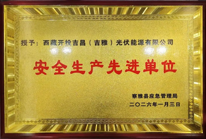 近日,西藏開投吉昌(吉雅)光伏能源公司被察雅縣應急管理局授予安全生產先進單位榮譽稱號。  此項榮譽的獲得,是地方政府對公司安全